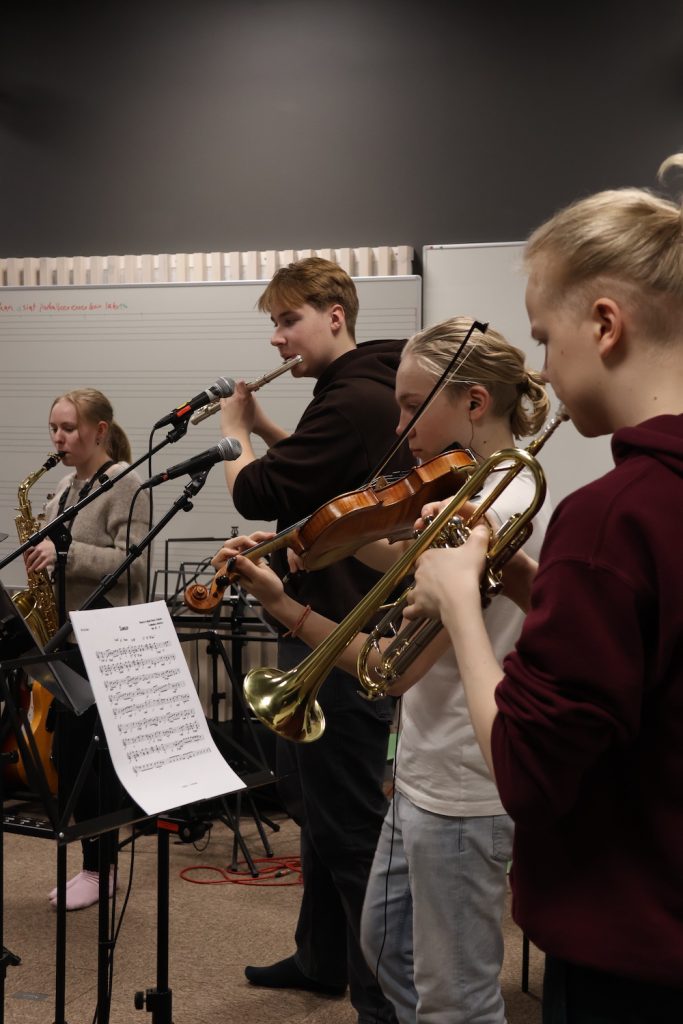 Eri kansanmusiikkikokoonpanot, joiden painotukset voivat vaihdella vuosittain, esim. rlantilainen ja itäeurooppalainen kansanmusiikki, folkrock ja country. Kollektiiviset sovitukset, ja omia sävellyksiä. Soittoa harjoitellaan myös korvakuulolta ja painopiste akustisissa soittimissa. Ryhmät esiintyvät koulun tilaisuuksien lisäksi Kaustisen Kansanmusiikkifestivaaleilla vuosittain.